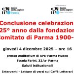 Fondazione Monteparma invita il 4 dicembre all’incontro promosso dalla Società Dante Alighieri di Parma in occasione della Conclusione delle celebrazioni del 125° anno dalla fondazione del Comitato di Parma 1900-2025