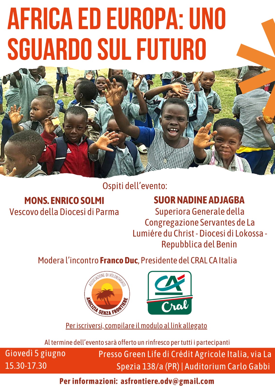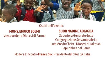 L’evento è realizzato in collaborazione con l’Associazione Amicizia Senza Frontiere ODV di Parma che da oltre 40 anni sostiene diverse missioni della Congregazione di Suor Nadine.