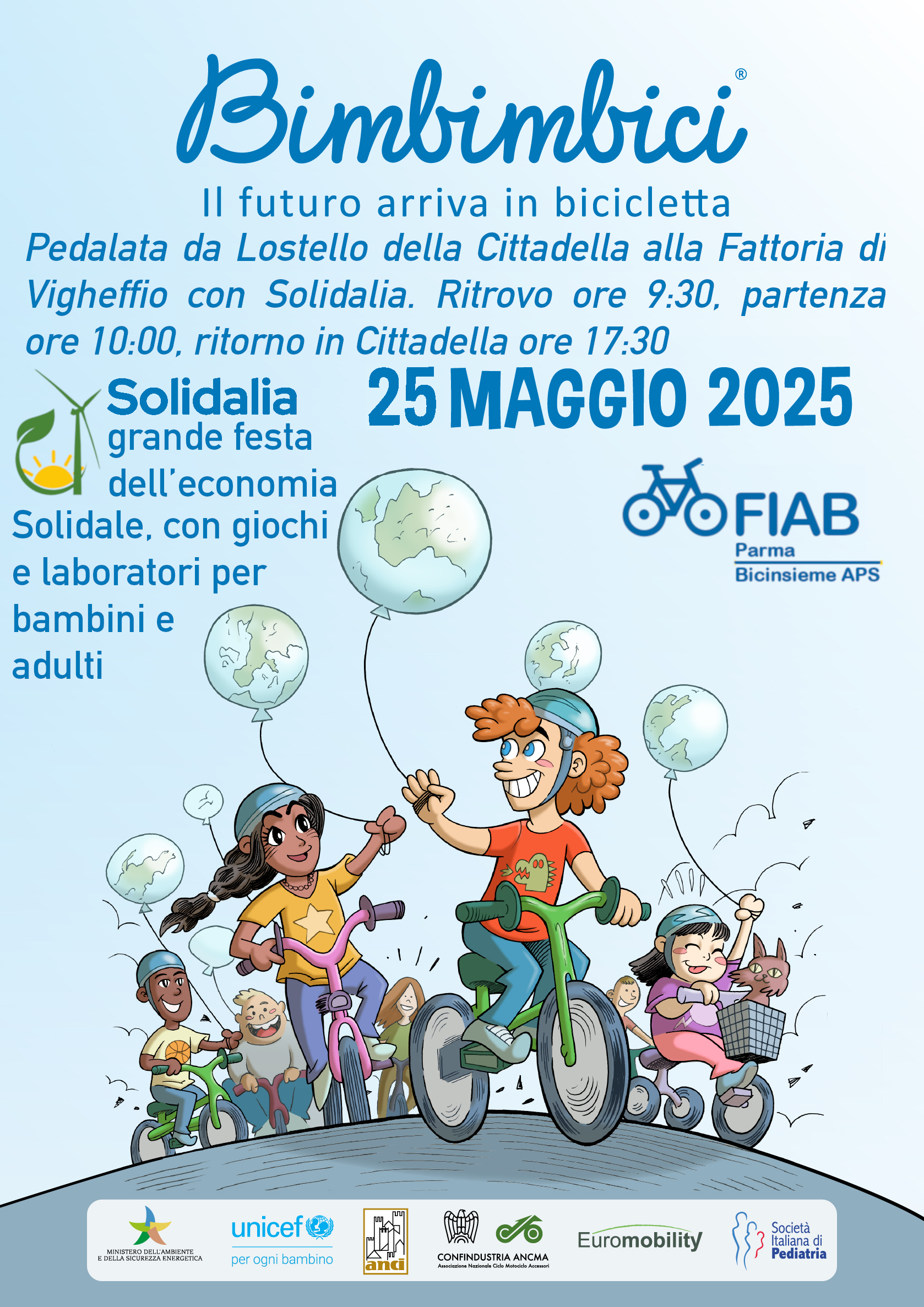 FIAB Parma – Bicinsieme-APS organizza una pedalata da Lostello della Cittadella alla Fattoria di Vigheffio dove si svolge Solidalia, la grande festa dell’economia solidale con giochi e laboratori per bambini e adulti.