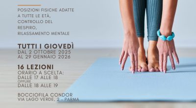 Il corso si terrà presso la Bocciofila Condor, in via Lago Verde 2 a Parma, dal 2 ottobre al 29 gennaio tutti i giovedì dalle 17 alle 18 o dalle 18 alle 19 a scelta.
