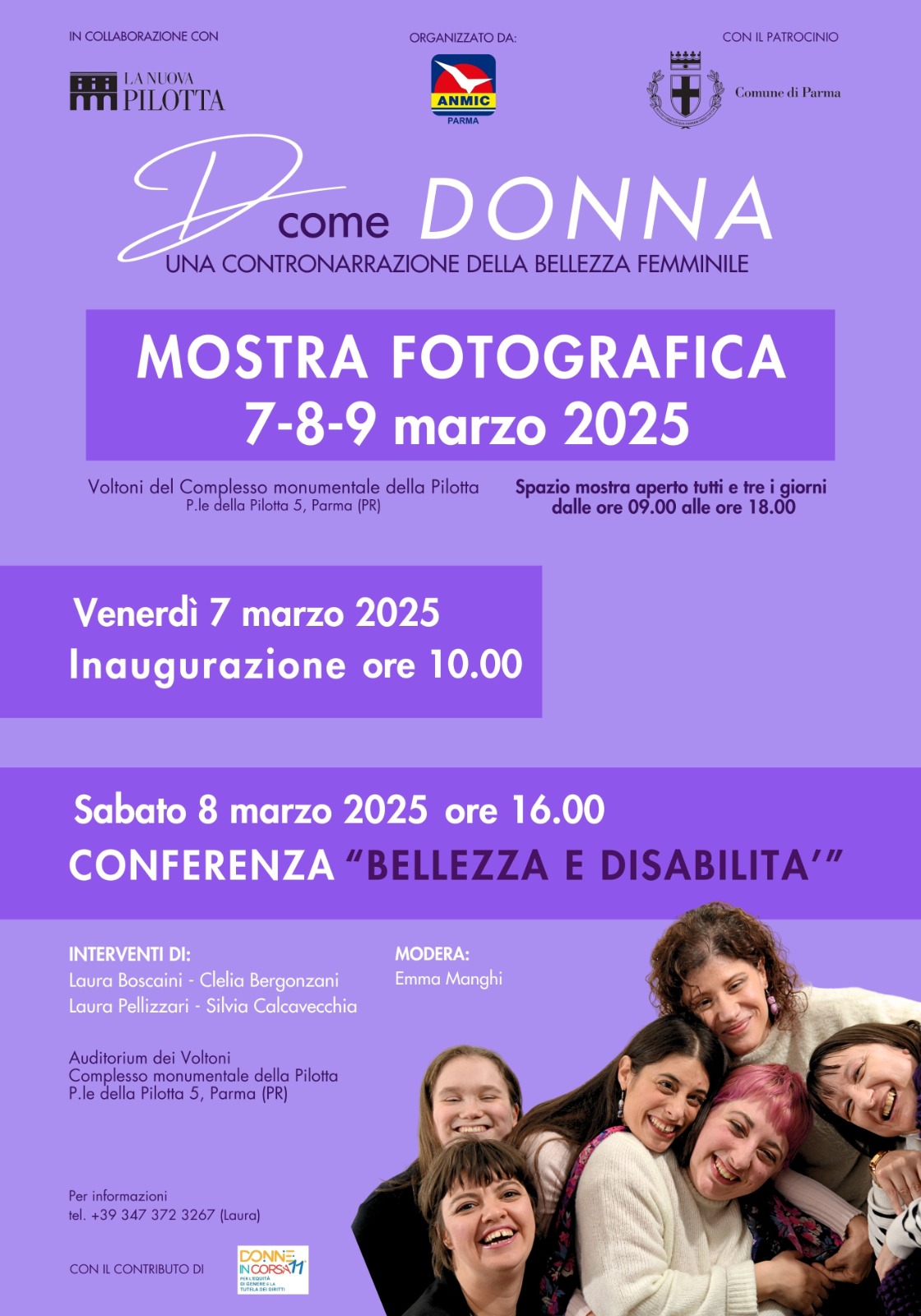 ANMIC Parma propone un evento speciale per il mese di marzo: “D come Donna. Una contronarrazione della bellezza femminile, una mostra fotografica e un incontro di approfondimento dedicati a una narrazione autentica e inclusiva della bellezza femminile.
