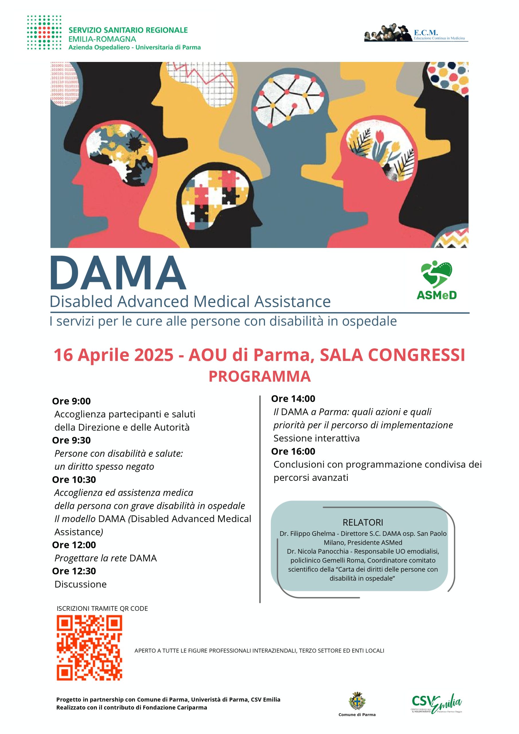 Mercoledì 16 aprile presso la Sala Congressi dell’Azienda Ospedaliera Universitarie di Parma si terrà il convegno “Disabled Advanced Medical Assistance”