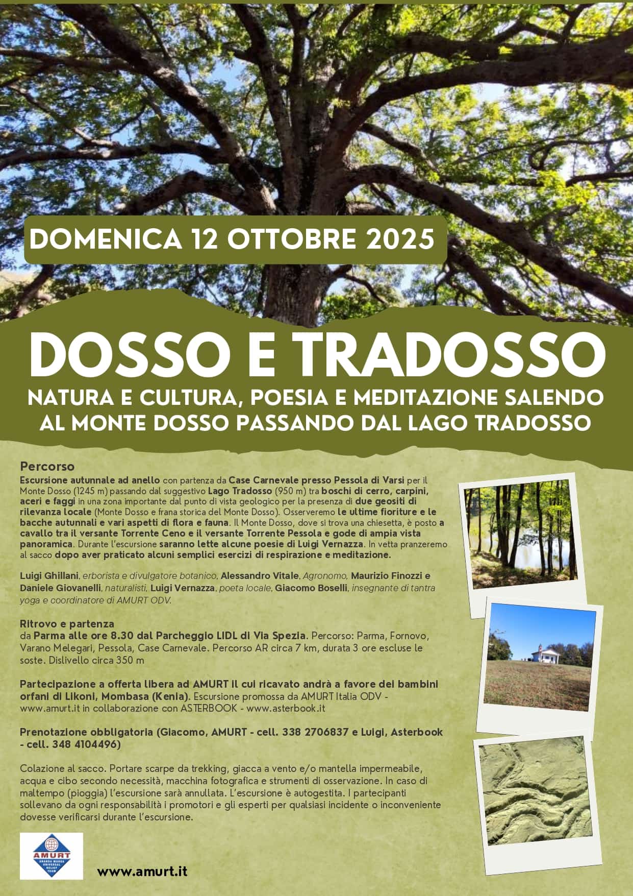 Associazione Amurt invita domenica 12 ottobre all’escursione “Dosso e Tradosso – natura e cultura, poesia e meditazione salendo al Monte Dosso passando dal Lago Tradosso”