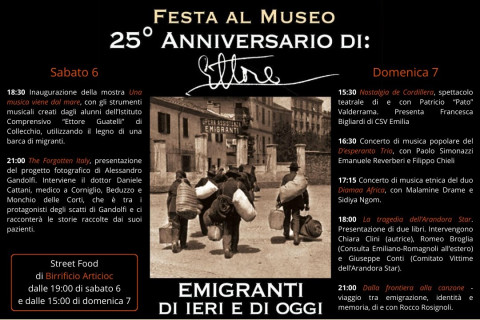 Due giorni al Museo Guatelli di Ozzano. Mostre, incontri, spettacoli, concerti e racconti intorno al tema degli emigranti di ieri e di oggi. C’è anche lo street food. Sabato e domenica 6 e 7 settembre.