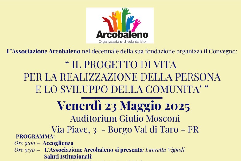 L’Associazione Arcobaleno celebra il decimo anniversario della sua fondazione con un convegno dedicato ai progetti di vita e allo sviluppo comunitario.