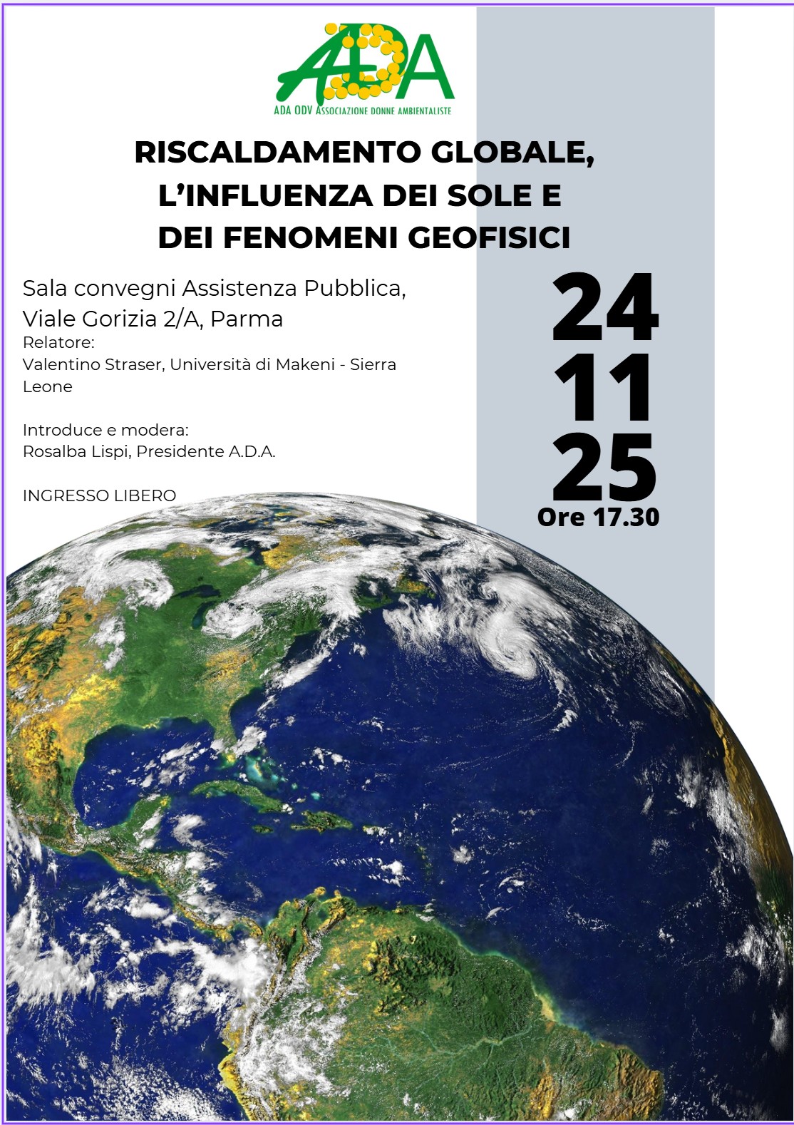 L’Associazione Donne Ambientaliste invita lunedì 24 novembre alle ore 17.30, all’Auditorium della Pubblica Assistenza di Parma in via Gorizia 2/a, all’incontro con il geologo e divulgatore Valentino Straser L’influenza dei fattori astronomici sul clima terrestre coinvolge scale temporali dell’ordine di migliaia o milioni di anni. Studi più recenti hanno dimostrato che le variazioni solari e i raggi cosmici possono influenzare non solo il clima terrestre, ma anche eventi geofisici come eruzioni vulcaniche esplosive e forti terremoti che, a loro volta, influenzano meteorologia e clima.