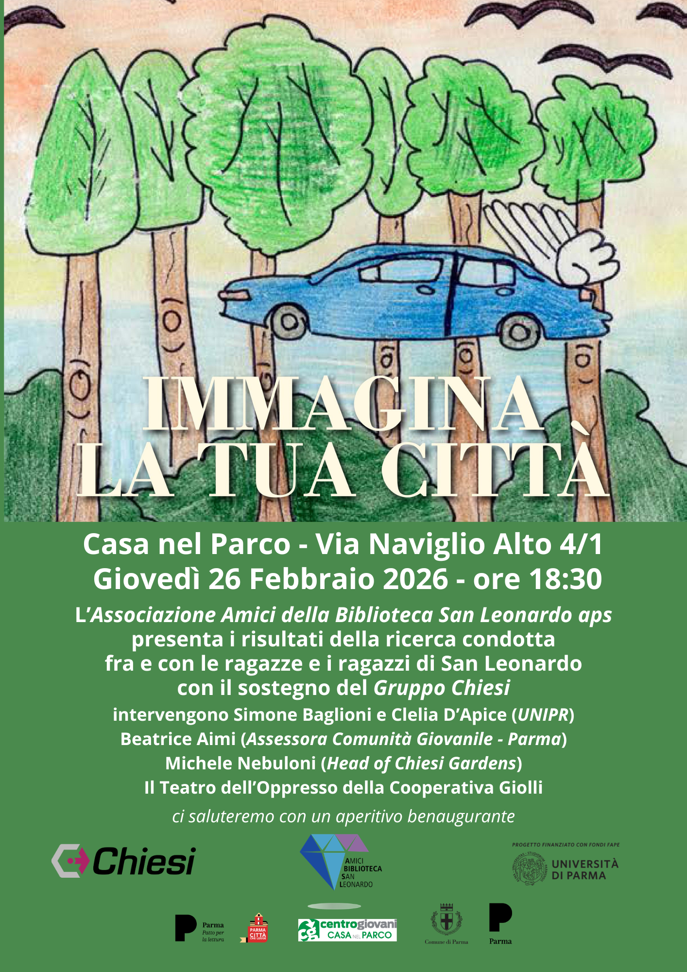 L’Associazione Amici della Biblioteca San Leonardo presenta giovedì 26 febbraio alle ore 18,30, presso la Casa nel Parco in via Naviglio Alto 1/A a Parma, i risultati della ricerca condotta con e fra le ragazze e i ragazzi di San Leonardo con il sostegno del Gruppo Chiesi.
