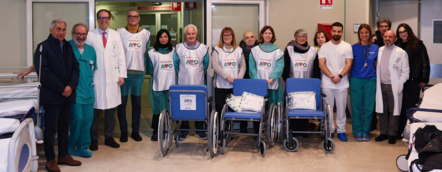 Lo scorso 4 dicembre, AVO Parma ha donato cinque sedie a rotelle e 140 kit di prima accoglienza al Pronto Soccorso del nostro Ospedale Maggiore.