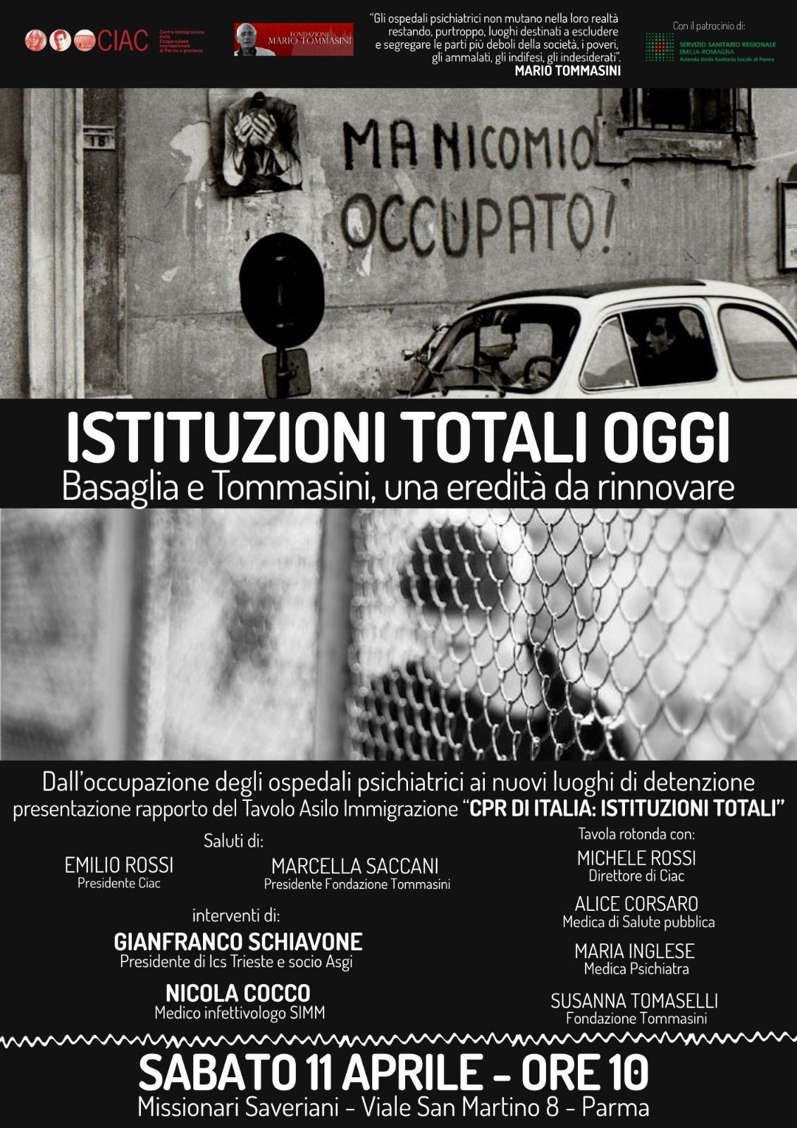 Sabato 11 aprile alle 10, presso i Missionari Saveriani (viale San Martino 8) a Parma, si terrà l’incontro Istituzioni totali oggi. Basaglia e Tommasini, una eredità da rinnovare.