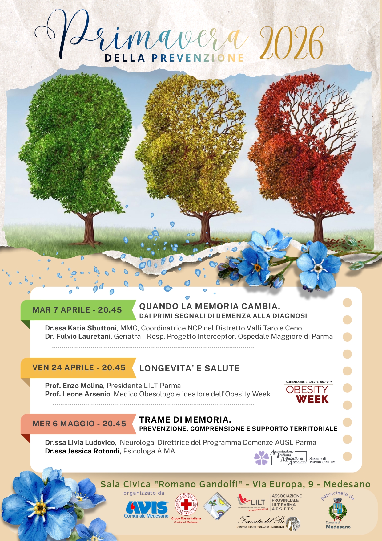 L’Avis Comunale di Medesano invita alla “Primavera della Prevenzione” ciclo di incontri informativi su salute, benessere e prevenzione.