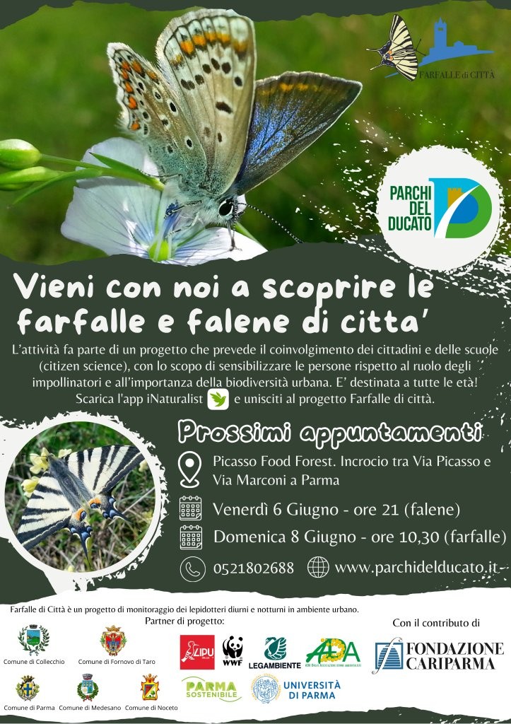 I due eventi sono resi possibili grazie alla collaborazione col progetto “Farfalle di città” dei Parchi del Ducato e il contributo di Fondazione Cariparma.