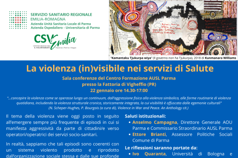 La violenza (in) visibile nei servizi di Salute è il titolo del seminario che si terrà il 22 gennaio dalle 14.30 alle 16.30, alla Fattoria di Vigheffio (PR), nella sala conferenze del Centro Formazione AUSL Parma.