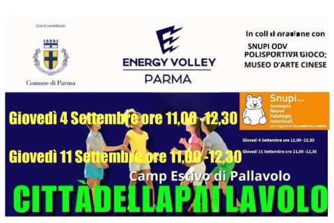 Energy Volley Parma e SNUPI ODV uniscono le forze per un'iniziativa speciale: il 4 e l'11 settembre due incontri informativi per i bambini che partecipano all’Energy Camp- Cittadella della Pallavolo