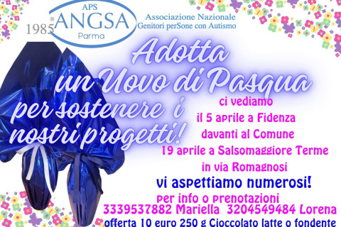 Sostieni le attività dell'Associazione Genitori perSone con Autismo acquistando le uova di Pasqua il 21 marzo e il 19 aprile a Salsomaggiore, il 5 aprile a Fidenza