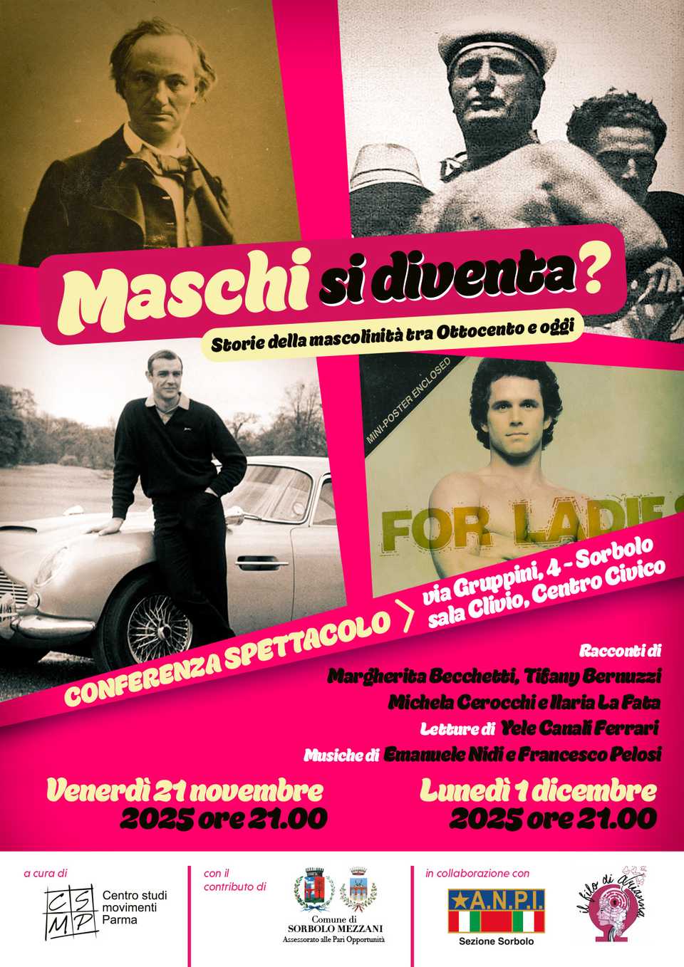 Il Centro Studi Movimenti invita al ciclo di incontri “Maschi si diventa?” che si terrà presso la sala Clivio del Centro civico di Sorbolo (Via Gruppini 4).