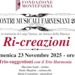 Tornano gli Incontri Musicali Farnesiani, rassegna di musica storica da sempre sostenuta da Fondazione Monteparma. Primo appuntamento il 23 novembre con il Trio Harmonia.