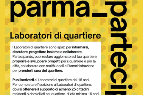 Con il “Regolamento degli strumenti degli Istituti di Partecipazione” del Comune di Parma sono stati infatti istituiti 11 nuovi Laboratori di Quartiere: Cittadella, Golese, Lubiana-San Lazzaro (accorpati), Molinetto, Montanara, Oltretorrente, Pablo, Parma Centro, San Leonardo – Cortile San Martino (accorpati), San Pancrazio e Vigatto.