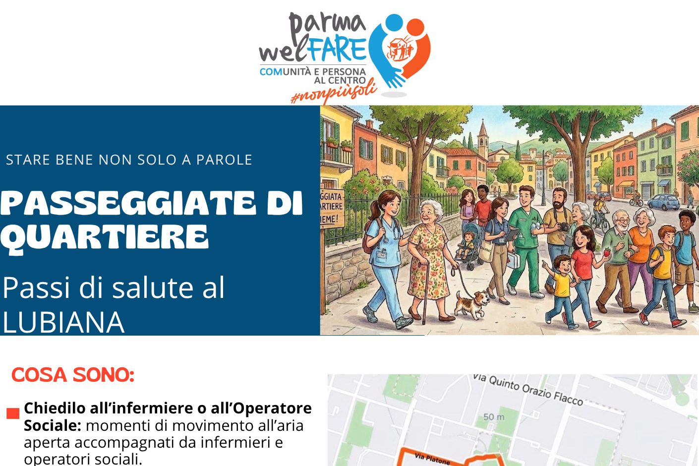 Un’occasione per stare bene, muoversi insieme e prendersi cura della propria salute. Giovedì 7 maggio arriva al quartiere Lubiana di Parma l’iniziativa Passeggiate di quartiere – Passi di salute al Lubiana, promossa nell’ambito di ParmawelFARE.
