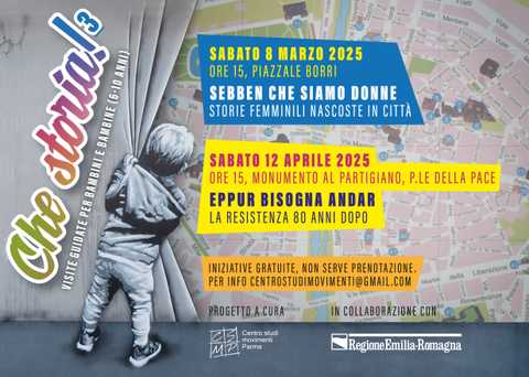 Questo percorso è il primo appuntamento della rassegna Che storia! Visite guidate per bambini e bambine (6-10 anni). Il prossimo sarà sabato 12 aprile, alle ore 15.00 dal Monumento al Partigiano per una camminata tra i racconti della Resistenza.