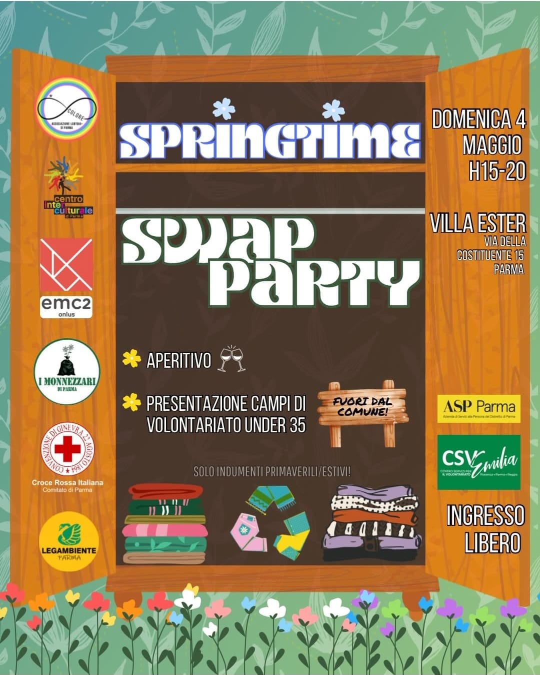 Domenica 4 maggio, dalle 15 alle 20, Villa Ester (via della Costituente 15, Parma) si anima con lo “Springtime Swap Party”.